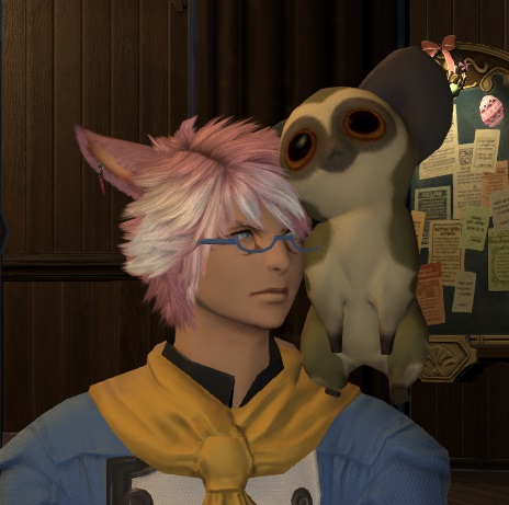 このように普通は肩の上に乗りますが、ララフェル(ヨナの種族)だけは違います!!